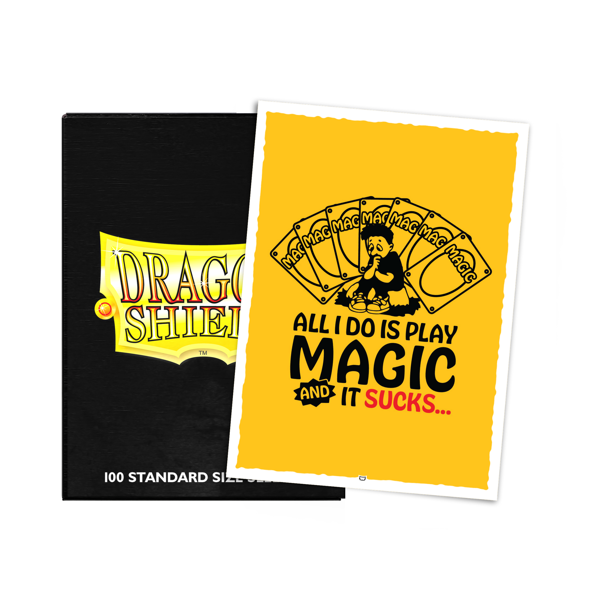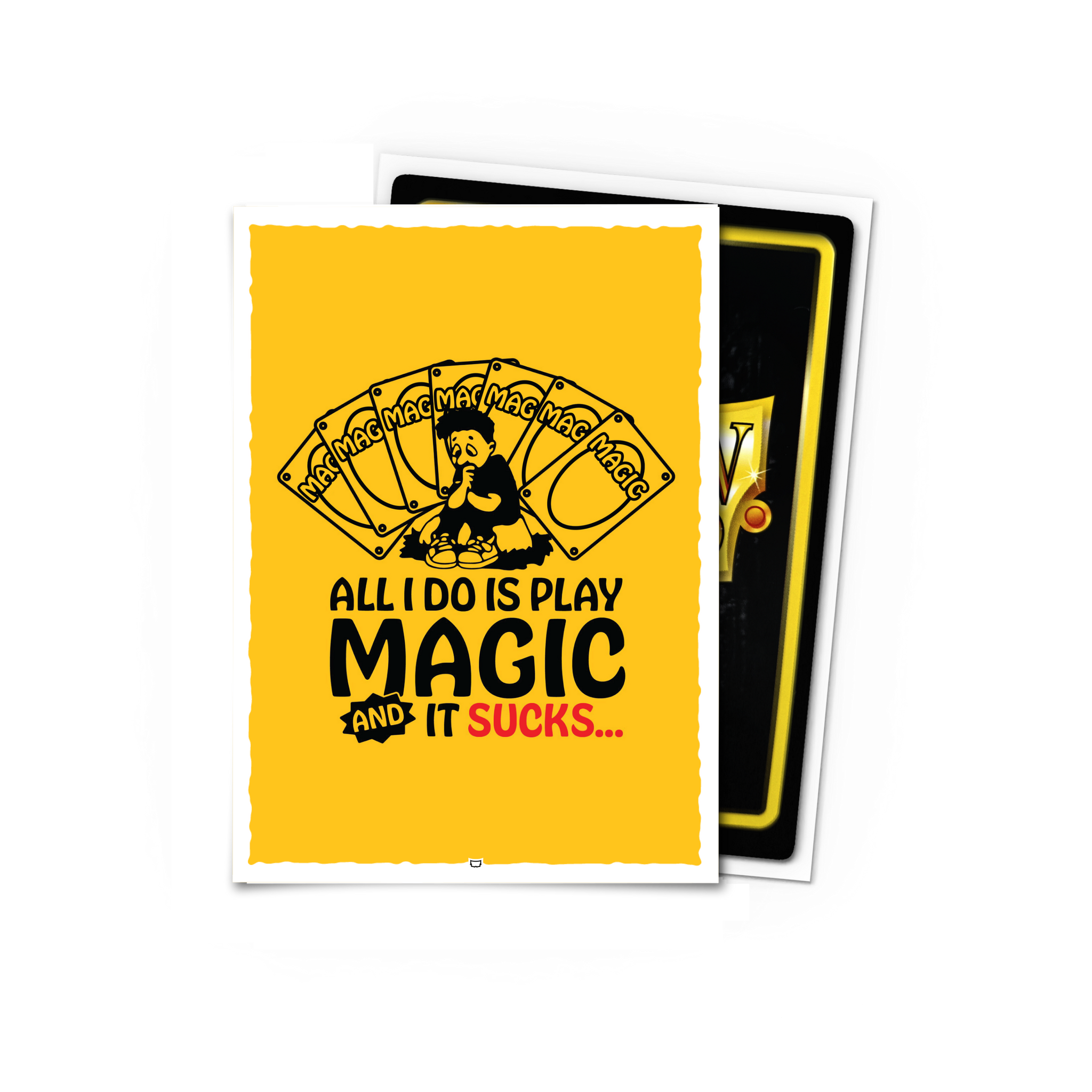 Kissed with a rich golden backdrop, these byjacobparis sleeves feature the plight of every spellcaster who’s ever been betrayed by their own draws. The perfect way to embrace the grind or curse your deck.