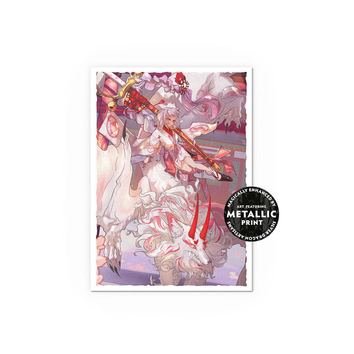 The Demon Hunters reimagined in a new format with beautiful silver details. Matte Art sleeves featuring artwork by Ryo Kamei are re-releasing with a new foiling effect highlighting silver details on sleeve art. Embark on an epic adventure with the Demon Hunters Yuki and Kuzuha as they track down twisted souls trapped in their demon form. Only when touched by the magic of Yuki's bell-Katana can these tortured souls be released.